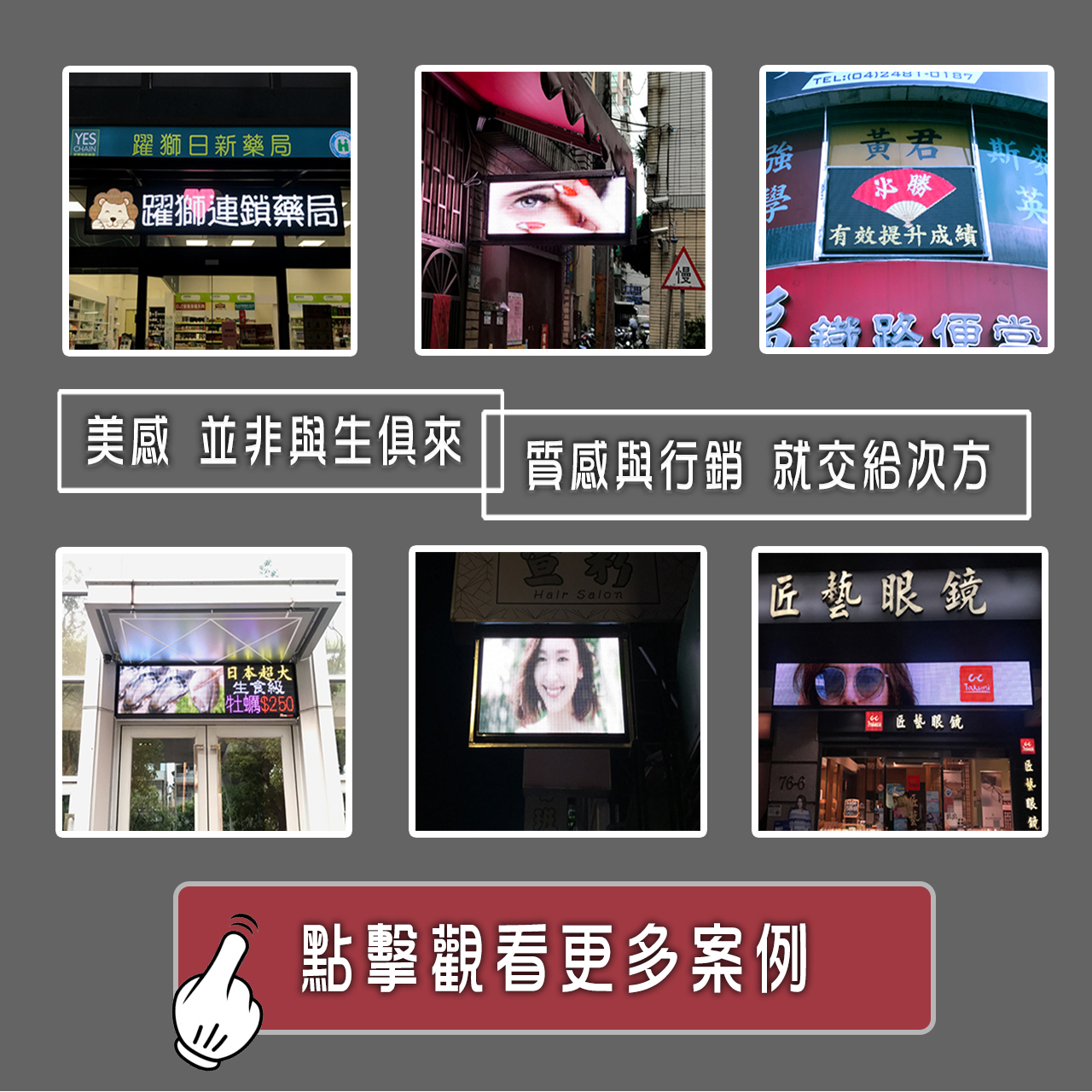 LED字幕機(俗稱LED跑馬燈)已是門面裝潢的一部分,你買的只是會發亮的箱子嗎?只是由右向左跑動的跑馬燈你想會有廣告效果嗎? 沒有廣告效果的LED字幕機,再便宜裝了也只是浪費錢 .